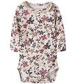 Elegant Name It bodysuit in a neutral, beige shade with long sleeves. The Bodysuit has a fine rib structure that adds a bit of texture to the simple design. Name It uses a practical asymmetrical snap closure along the front, which makes it easy to open and close.