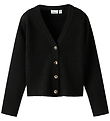 The Cardigan has a round neckline and closes with pull buttons along the front. The Name It cardigan is designed with a ribbed edge at the sleeves and hem, which adds an extra detail to the overall look.