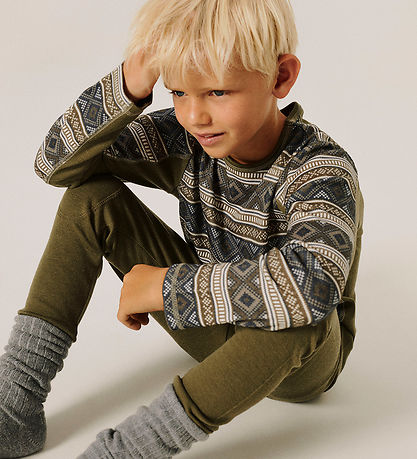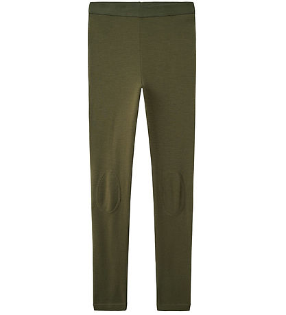 Beautiful Name It trousers in olive green. The Leggings have an elastic waist and decorative stitching on the knees. They are made with soft merino wool.