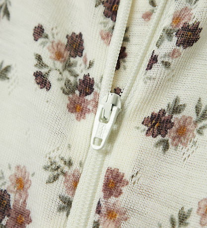 The Name It nightsuit has long sleeves and a round neckline with narrow lace edges. It opens at the front with a zipper with inner post and chin guard, which starts at the neck opening and ends at the left leg. As a smart detail, the nightsuit can be folded up around the feet if desired. The Nightsuit is made of a comfortable and light wool quality.