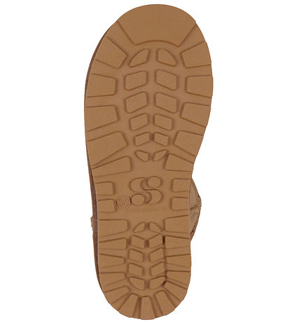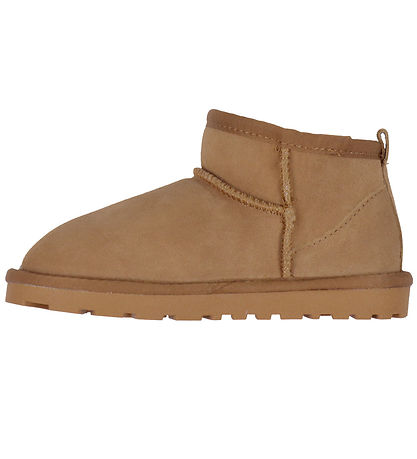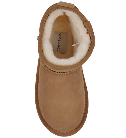 Modern Sofie Schnoor teddy boots in brown suede with smart stitching details. The Teddy boots have a low shaft with a practical strap at the back. Inside there is light, faux fur. The outsoles are lightweight and flexible, and have a good tread pattern under the bottom, which ensures a stable foothold.