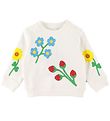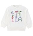 Nice Stella McCartney Kids sweatshirt in white, and on the front it says "Stella" printed with colorful letters shaped like flowers and mushrooms.
