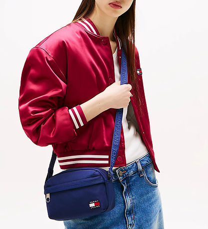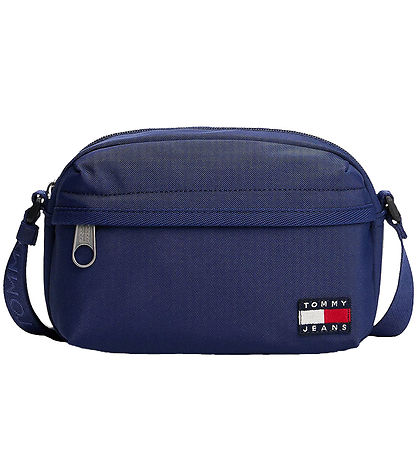 Smart Tommy Hilfiger shoulder bag in royal blue with a logo on the front. The shoulder bag consists of two Rum, both of which open with a zipper. Inside the largest Rum, there is an open pocket at the back. The shoulder bag has a wide, adjustable shoulder strap with blue logos.