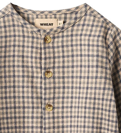 Charming Wheat shirt with a classic check pattern in beige and dark blue. The Shirt has long sleeves and a button-through front closure. The rounded neckline gives a timeless look, while the fit is just right for a modern look.