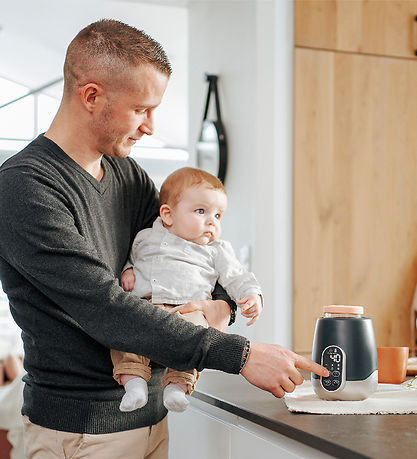 - Smart: enter the temperature and quantity of the milk, and the bottle warmer will calculate the optimal heating time itself. It can also be delayed by up to 12 hours, so that the milk can be ready at a specific time