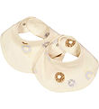 The Filibabba has a decorative pointy shape and it closes with a practical push-botton in the neck with two settings. The bib consists of two layers.