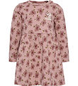 Beautiful Hummel dress with long sleeves in a soft, dusty pink shade. The Dress has a decorative frill at the shoulders and a stylish logo print on the chest, which adds a nice touch to the design.