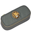 The Jeune Premier pencil case consists of one large compartment, which opens with a zipper at the top, with a pendant in green and pink rubber, with a smiley in golden metal in the middle.