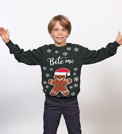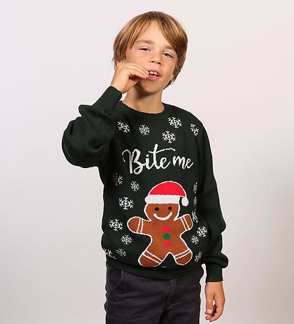 Style: Kids8 - Bite Me Christmas Sweater, Colour: Dark Green