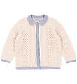 Charming Konges Sløjd cardigan knitted in light blue with fine details.