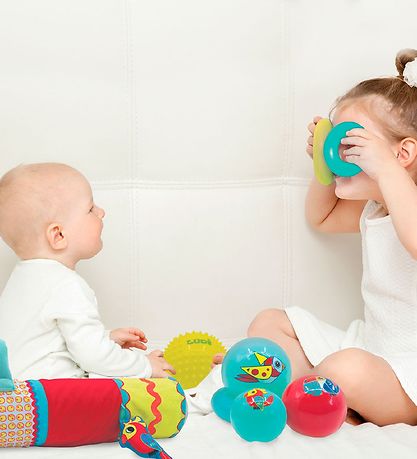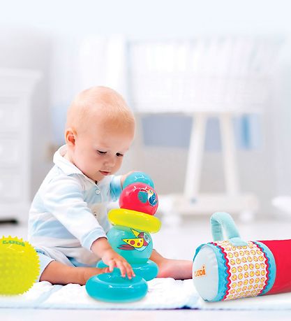 The Ludi play set is perfect for the little ones who are still exploring the world and their senses. The sensory ball is filled with massage buds, which are exciting for the little ones and the stacking tower consists of six parts that can be stacked on top of each other. The tube is filled with different textures and has a teether on the side, a rattle and a set that makes sounds when you press it, all of which help to strengthen the kid's fine motor skills, senses and logical sense.