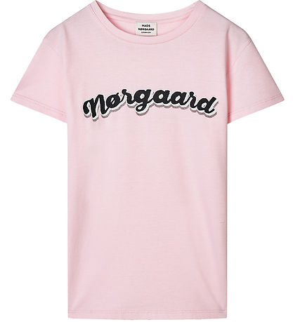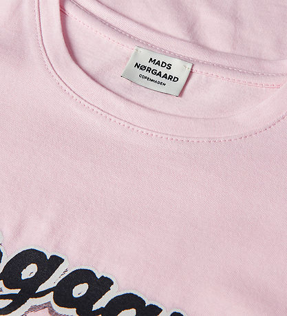 Beautiful Mads Nørgaard T-Shirt with short sleeves in a light pink shade with a large logo print on the front in black and white. The T-shirt is ideal for all occasions and gives a cool look.