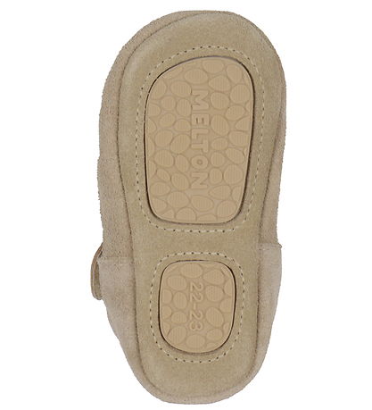 Lovely Melton ballerina slippers in beige with open details that ensure good ventilation. The Ballerina slippers have a practical velcro closure, which makes them easy to take on and off, ideal for little ones.