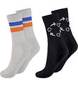 Fine Molo socks sold in a 2-Pack in plain black and grey with an eye-catching motif of a green alien on the back of the shaft. The Socks are equipped with a wide ribbed edge at the top of the shaft and around the feet, which ensures a comfortable fit.