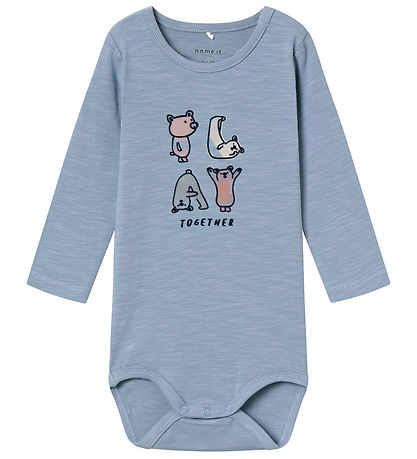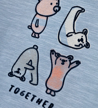 Smart Name It bodysuit in melange light blue with cute DYR print in blue, red and white shades and print of the text "Together" in black on the front.
