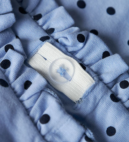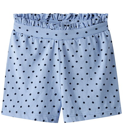 Elegant Name It shorts in a soft blue shade with a classic dotted pattern. The Shorts have an elastic waist for a good fit and wrinkled details at the top for a nice look.