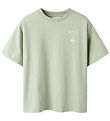 Cool Name It t-shirt in pink with a print on the front of a heart filled with flowers in different shades. The T-shirt has a classic round neckline and very short sleeves.