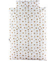 Beautiful Nørgaard Madsens bedding with an allover print with leaves in shades of green and various lions in brown and green.