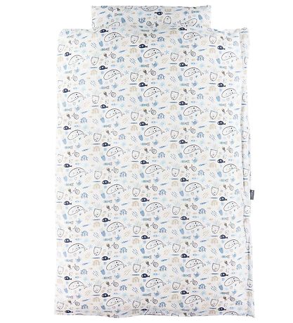 Cool Nørgaard Madsens bedding in white, with an allover print of different animals from the sea in blue and beige shades.