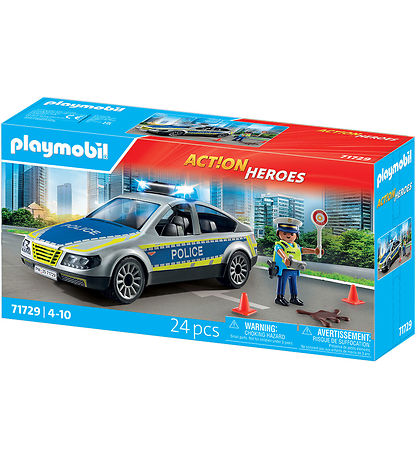 Cool Playmobil Action Heroes set with a total of 24 parts, which together form a police patrol car with lights and sounds and a removable roof, a police officer and lots of accessories.
