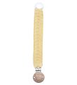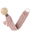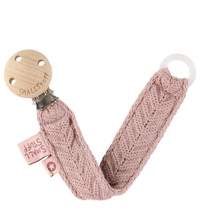 Sweet Smallstuff pacifier clip in powder rose and crochet in cotton with a nice herringbone pattern.