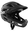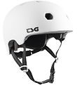 The TSG cycling helmet is shaped like a skater helmet. It fastens under the chin with adjustable straps and a practical click buckle. At the top there are practical air holes.