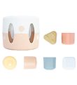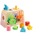 Colourful Vilac in wood shape sorter shaped like half a watermelon with brilliant rainbow colors. The included toy figurine have cute fruit faces, which adds extra charm to the play. Each fruit only fits in its own hole, which stimulates the kid's logic and dexterity. A fun addition to the children's room from Vilac.
