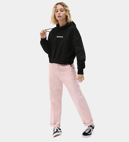 The Dickies hoodie is a cropped model that goes straight to life. The blouse has a fixed hood with a cotton lining, and the hood can be tightened with laces at the front. The sleeves and bottom of the hoodie have wide ribbed edges.
