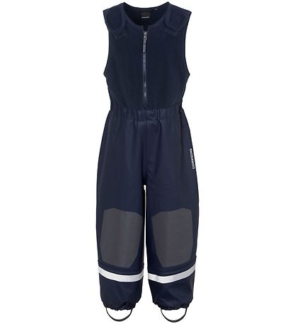 Didriksons rain pants have a practical upper in fleece with narrow edges. The upper part has wide straps that can be adjusted in length with velcro closures, and it can be opens at the front with a zipper. The Trousers have elastic at the waist and at the ankles, and there are adjustable, detachable rubber bootstraps. On the knees there are practical, grey reinforcements.