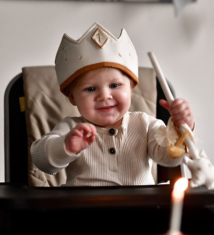 The Fabelab birthday crown has an elastic insert in the neck, so it sits well and comfortably around the head. In front, there are two pieces of velcro, where the supplied felt numbers (1-10) can be attached, so that the birthday crown fits the birthday child.