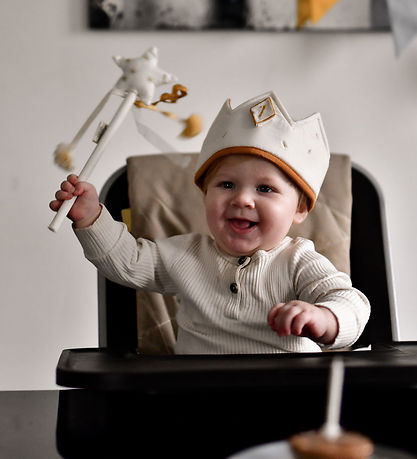 Sweet Fabelab birthday crown in beige with an inside in mustard yellow.