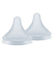 The baby bottle nipples come in a pack of two, and both include a slow flow of liquid. They also have a smart anti-colic valve to prevent babies from getting flatulence.