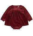Charming Konges Sløjd bodysuit in pink with a delicate floral pattern in red and green.