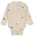 The Bodysuit has long sleeves and a round neckline. The sleeve edges and bottom are detailed with fine small stitching, while practical push buttons at the bottom and on one shoulder make the bodysuit easy to take on and off.