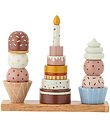 Fun Little Tikes play food from the Creative Chefs series. This is an ice cream set, which consists of 17 realistic ice cream dessert accessories, including three different ice cream varieties; vanilla, chocolate and strawberry.