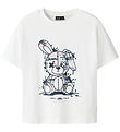 Beautiful LMTD t-shirt knitted in a light, white colour. The T-shirt has a simple structure with short sleeves and slightly puffed shoulders, which gives an elegant detail. The LMTD t-shirt has a round neckline with ribbed edges, without additional print or patterns, which creates a stylish look.