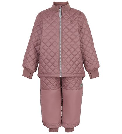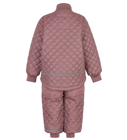 Adorable Mikk-Line thermo set consisting of a thermo jacket and a pair of thermo trousers in dark pink with a quilted structure.