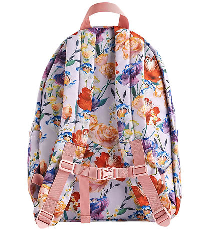 Nice Molo backpack in light purple with a colorful allover floral print.