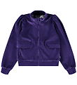 Colourful Molo cardigan in knitted with long sleeves in a combination of blue, purple, orange and white. It has eye-catching prints with texts and symbols that make it fun and unique for any wardrobe.