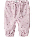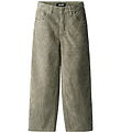Stylish Molo corduroy trousers in a deep black colour with a characteristic velvet texture. The Molo corduroy trousers have an adjustable elastic edge waistband and are opened with a push-botton and a zipper. The trouser legs are fitted at the top and have extra width at the bottom.