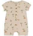 Nice Monsieur Mini summer romper in beige terrycloth with an all-over-print of baguettes.