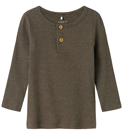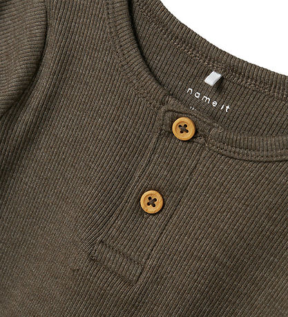 Charming Name It blouse with long sleeves in a deep brown shade and with rib structure. The Blouse has fine details with buttons on the front, which gives a stylish look, suitable for both everyday and more relaxed occasions.