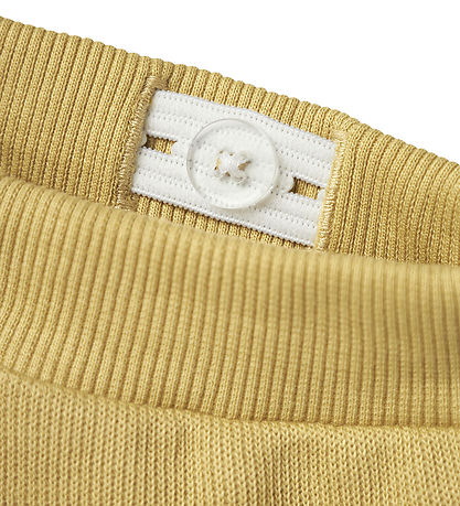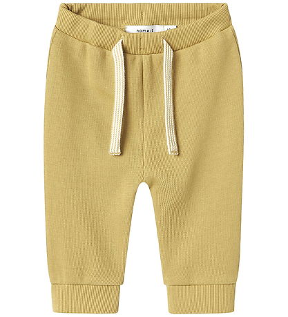Practical Name It sweatpants in a nice green-yellow shade and with a ribbed structure. The sweatpants have a good elastic at the waist, which can be adjusted with inside buttons. At the front there are decorative, striped drawstring.