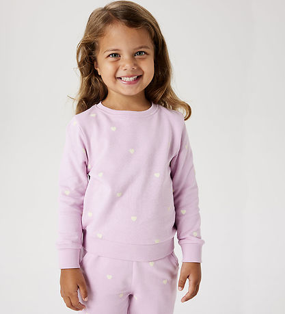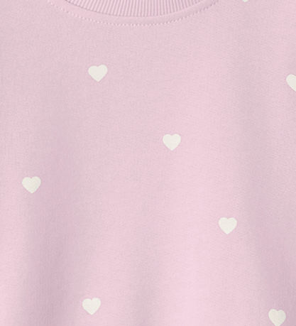 Practical Name It sweatshirt in a soft pink shade with small heart motifs scattered all over the sweater. The Sweatshirt has long sleeves and a relaxed fit that ensures a comfortable fit.