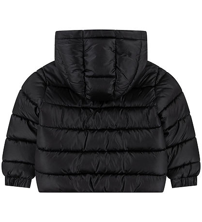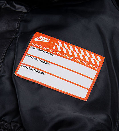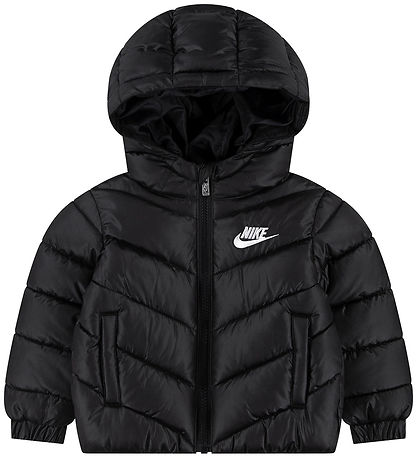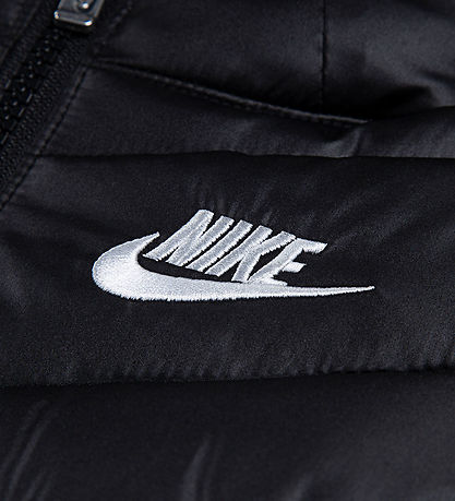 Nice Nike puffer jacket in black with an embroidered, white logo on the left chest and slanted seams.