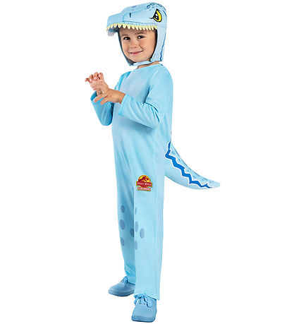 Colourful Rubies 's dinosaur costume in blue.