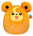 Fine Squishmallows soft toy in the shape of the pokémon Teddiursa, designed as a round cushion with an embroidered face and details.