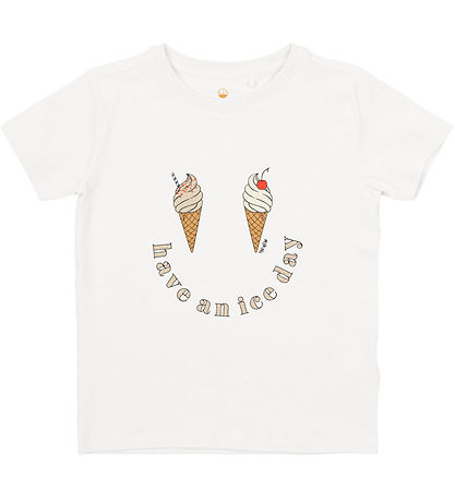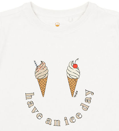 Beautiful t-shirt from The New in a ready white with a colorful ice cream and text print that spreads joy. The T-shirt has short sleeves and is perfect for warm days.