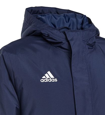 Beautiful adidas Performance puffer jacket in plain navy, and on the front right side there is a white logo printed.