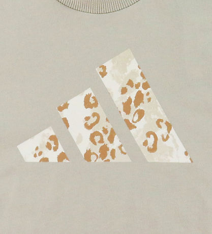 The T-shirt is adorned with a discreet leopard pattern in the iconic adidas logo on the front. The T-shirt has short sleeves and a round neckline with a ribbed edge, which gives it a stylish look.